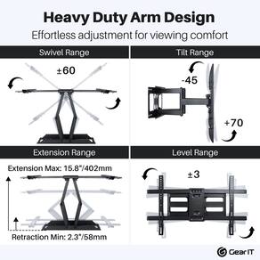 - [ECONOMIA DE ESPAÇO] Com uma TV de baixo perfil, o suporte de parede pode ser colocado até 2,3 polegadas encostado na parede e pode ser puxado até 15,8 polegadas para facilitar o acesso à parte traseira da TV.