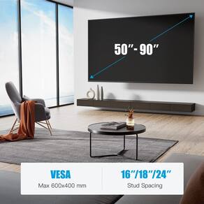 - Ampla compatibilidade de TV: Este suporte de parede para TV é compatível com TVs de 50-90 polegadas com padrões VESA de 200 x 100 mm a 600 x 400 mm. Projetado para 40,6 cm a 60,96 cm de madeira, concreto e montagem em parede de tijolos. Não monte apenas na parede de gesso.