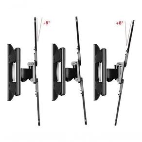 Indicado para TVs planas e curvas com peso máximo de 38 Kg e compatíveis com padrão Draik (horizontal x vertical) 100x100 a 400x400 mm, normalmente encontrado em televisores de 26 a 55 polegadas. Possui função estender, girar e inclinar