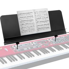 O suporte de partitura para teclado NORD é habilmente feito de alumínio durável com uma espessura de 2,5 mm e um acabamento preto elegante, garantindo estilo e força. Projetado para segurar teclados NORD com segurança, possui um ângulo ajustável de 120 graus para visualização ideal e é compatível com uma ampla variedade de modelos, incluindo NORD Grand, Stage, Electro, piano e muito mais. A estrutura de aço resistente mede 69,8 cm x 26,7 cm e inclui duas prateleiras espaçosas, oferecendo amplo espaço para partituras, tablets ou laptops. Com sua instalação sem ferramentas, este suporte é fácil de fixar e destacar, tornando-o um acessório versátil e prático para qualquer músico. - Ajuste perfeito para teclados Nord: projetado exclusivamente para teclados digitais Nord, este suporte de partitura se fixa perfeitamente para uma fixação segura e estável, melhorando sua experiência de jogo durante a prática ou desempenho. - Estrutura resistente e durável: Feito de metal durável e de alta qualidade (alumínio), este suporte oferece uma plataforma confiável para Nord Grand Stages 76/88, Electros C1/C2/C2D e piano. Feito para durar, resiste ao uso prolongado com facilidade. - Fácil instalação e ajuste: prenda e remova o suporte sem esforço sem ferramentas. Você pode ajustar o ângulo para encontrar a posição de visualização perfeita, garantindo conforto e conveniência. Tem uma estrutura de aço que mede 69,8 cm x 26,7 cm e inclui duas prateleiras. - Leve e portátil: o suporte é leve com uma espessura de 2,5 mm e o design resistente facilita o transporte e a configuração, ideal para shows, sessões de estúdio ou ensaios em movimento. Possui um ângulo ajustável de 120 graus para visualização ideal. - Design elegante e minimalista: complemente seu teclado NORD com este suporte elegante e minimalista que combina estilo com funcionalidade. Seu design compacto garante que não ocupe espaço extra enquanto oferece o máximo de utilidade.