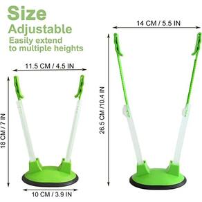 - Altura ajustável: os braços largos do suporte do rack se estendem facilmente a várias alturas. Os braços têm 18 cm de altura com uma lacuna de 11,4 cm entre a parte superior, e podem ser estendidos até 26,4 cm com uma lacuna de 14 cm entre a parte superior. altura ajustável para suportar sacos plásticos maiores e aumentar a facilidade de armazenamento de alimentos.