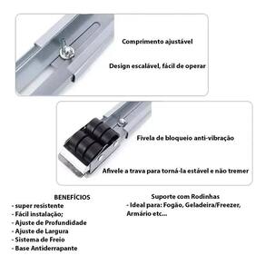O Suporte de Rodinhas para Geladeira, Fogão, Máquina de Lavar e Freezer é o acessório perfeito para facilitar o seu dia a dia. Com ele, você não precisa mais fazer esforço desnecessário para mover seus eletrodomésticos e móveis. Esse suporte é ajustável, podendo ser utilizado em eletrodomésticos e móveis de diferentes tamanhos. Ele possui travas que garantem a segurança na hora de mover o aparelho e é feito de aço resistente e reforçado, suportando até 200kg. A instalação é fácil e rápida, e a base antiderrapante e anti vibração evita acidentes e protege o piso. Além disso, o suporte ajuda a proteger os eletrodomésticos e móveis contra a água da limpeza, evitando ferrugem e danos nas madeiras. O Suporte de Rodinhas para Geladeira, Fogão, Máquina de Lavar e Freezer é a solução ideal para quem busca praticidade e comodidade na hora de movimentar os eletrodomésticos. Com ele, você pode facilmente limpar embaixo dos aparelhos ou até mesmo mudá-los de lugar sem esforço. Especificações Técnicas: - Suporta até 200kg - Material: aço carbono, plástico e EVA - Cor: cinza - Dimensões mínimas A x P : 3,5 cm x 40 cm - Dimensões máximas A x P : 3,5 cm x 69 cm - Largura do produto: 5 cm - Dimensões da base L x P : 5 cm x 7 cm - Peso do produto: 1,40 kg O pacote inclui 02 carrinhos ajustáveis com freio. A do vendedor é de 3 meses. Com o Suporte de Rodinhas para Geladeira, Fogão, Máquina de Lavar e Freezer, você terá mais facilidade e praticidade no seu dia a dia. Não perca tempo e adquira o seu agora mesmo! Marca: Não Informado Ean: 7898380613537