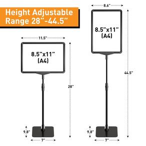Ajuste de altura: a altura do suporte de sinal ajustável é entre 68,5 cm e 99,1 cm, permitindo que você personalize a altura da tela para atender a vários ambientes e necessidades de visibilidade.