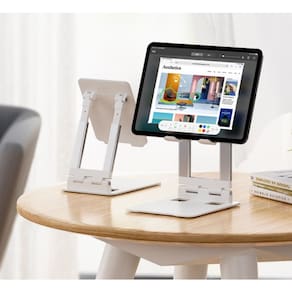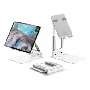 Corpo maior e construção mais resistente: transformado em um corpo de liga de alumínio maior e mais pesado, com 4 almofadas de borracha na parte inferior, este suporte de monitor portátil permite que você segure seus dispositivos de forma mais estável sem cambalear ou virar. O gancho de 0,8 polegadas mais largo com almofadas antiderrapantes evita que o dispositivo deslize e também é capaz de segurar o tablet com segurança nos modos vertical e horizontal, mesmo com uma capa grossa. Totalmente dobrável até o tamanho do bolso: o suporte para tablet de mesa pode ser dobrado completamente para facilitar o armazenamento, cabendo perfeitamente no bolso ou deslizando em uma bolsa. O espaço pequeno ocupa pouco espaço na sua mesa, balcão ou cozinha. Compacto e portátil para transportar em viagens. Ajuste de ângulo diferente: possui dois eixos rotativos fortes, nosso suporte para tablet de mesa permite diferentes ângulos de visão, mantém-se no lugar e não colapsa. Este suporte de mesa compatível com combina com o melhor nível de visão para manter uma postura confortável ao se reunir com zoom, FaceTime, transmissão ao , assistir programas de TV ou filmes, ler, aprender digitalmente e seguir receitas na cozinha. Design elegante e amigável: com uma aparência elegante e uma borda elegante, o suporte ajustável para tablet evita arranhões e é fácil de colocar o dispositivo. O design de reservar um espaço recortado para o cabo de carregamento permite que você carregue enquanto joga. Companheiro perfeito para uso amplo: serve para todos os tablets, telefones ceres e leitores eletrônicos de 4 a 13 polegadas, o suporte ajustável para tablet é o companheiro ideal quando em casa, escritório, cozinha ou viagens. Compatibilidade: Universal.