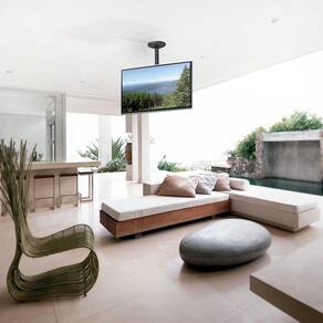 Função estender, girar e inclinar. Suporte de teto com giro horizontal até 360 graus, regulagem de altura vertical de 70 a 126cm, com intervalos de regulagem a cada 5cm e inclinação TILT da TV até -30 graus, cobrindo praticamente todos os pontos de visualização. Movimentos leves e precisos para obter o melhor ângulo no uso em ambientes residenciais ou comerciais.