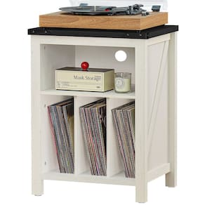 A parte superior espaçosa é grande o suficiente para acomodar diferentes tamanhos de toca-discos. A área de exibição do armário de discos é projetada para ter 21 cm de altura, para que você possa colocar livremente seus itens colecionáveis ou equipamentos de música favoritos.