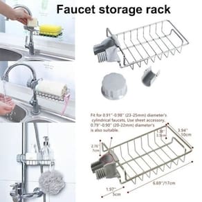 Material Aco inoxidavel e ABSInstalacao Fixacao na torneira com rosqueamentoCaracteristicas Antiferrugem resistente facil de limpar e economiza espacoDesign Estrutura vazada para drenagem de aguaAltura Ajustavel conforme necessidade