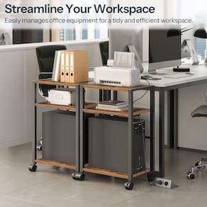 Por que escolher o suporte de torre de computador HOOBRO? O suporte de torre HOOBRO é a escolha perfeita para aumentar a conveniência em seu escritório ou espaço doméstico. Feito de materiais premium, o suporte não é apenas resistente e duradouro, mas também segura sua torre de PC. Levantando seu computador do chão, ele abre espaço na mesa, mantém seu espaço de trabalho organizado e aumenta a produtividade. Para quem trabalha em designs criativos em casa, joga ou busca eficiência no escritório, o estande da HOOBRO oferece uma organização fácil de equipamentos. Seu design compacto combina perfeitamente com qualquer espaço, renovando seu espaço e ajudando você a se concentrar em seu trabalho, o que pode levar a uma maior criatividade e inspiração. Especificações: - Cor: marrom rústico, preto - Material: metal, aglomerado - Tamanho do produto: 16,6 “L x 11,4" L x 29,7" H - Máx. Capacidade de carga estática de cada nível: 44 libras Conteúdo da embalagem: - 1 x suporte de torre de computador - 1 x kit de hardware - 4 x rodízio - 4 x pé ajustável - 1 x instruções HOOBRO Notas: - Bloqueie os rodízios quando não estiverem em uso para evitar o deslizamento acidental do produto. - Antes de comprar, confirme se as dimensões do seu dispositivo são compatíveis com o suporte. - Espaço de escritório otimizado: com 16,6 “L x 11,4" L x 29,7" H, o suporte da torre de PC corresponde à altura da maioria das mesas de escritório. Seu design de armazenamento de 3 camadas simplifica a organização do equipamento, com a parte superior para impressoras, a central para papel e a parte inferior para a torre do seu computador — serve para a maioria das torres: a prateleira central ajustável oferece duas opções de altura, criando um compartimento inferior com uma faixa de altura de 18,1" a 25,6" para caber na maioria das torres de PC. Confirme as dimensões do seu equipamento antes de comprar para obter uma combinação perfeita - Central elétrica versátil: o carrinho de suporte de torre possui um filtro de alimentação multifuncional com 2 tomadas CA e 2 portas USB para facilitar o carregamento de sua torre, impressora e muito mais. O filtro elétrico pode ser movido junto com a posição da prateleira para adaptar sua necessidade de carregamento - rodízios e pés ajustáveis: o suporte da torre do computador possui 4 rodízios, 2 dos quais têm freios, permitindo fácil movimentação para qualquer local desejado. Ele também fornece 4 pés ajustáveis para acomodar diferentes níveis de piso e configurações de espaço - Construção robusta e fácil montagem: o suporte para PC é construído com aglomerado de alta qualidade e uma estrutura de metal para maior resistência e longevidade. Sua estrutura simples vem com um manual ilustrado e todas as ferramentas necessárias para uma montagem fácil e rápida
