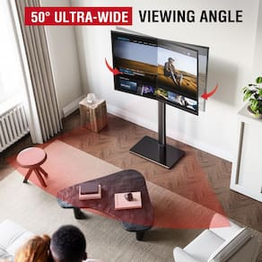 - Ajuste de altura flexível: nosso suporte de TV de chão tem 8 ajustes de altura diferentes, a coluna pode ser ajustada em 4 posições, cada uma 2,6" (65 mm), e o suporte suspenso pode ser ajustado em 2 posições, cada uma 2,4" (60 mm). Você pode escolher livremente a altura desejada para relaxar o pescoço e o corpo e desfrutar de uma experiência de visualização confortável enquanto assiste TV
