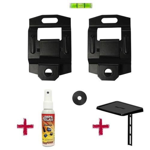 Combo suporte para TV Universal Ultra Slim com inclinação para gestão de cabos e trava de segurança automática. Acompanha nível bolha, parafuso para madeira/MDP/MDF, limpa telas e suporte para conversor em ABS. O acessório ideal para você que precisa de espaço e gosta de um ambiente organizado. Suporta até 100kg e você pode instalar com praticidade sua TV na parede. Indicado para aparelhos de 10 a 85 polegadas.