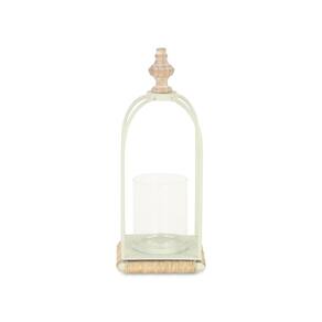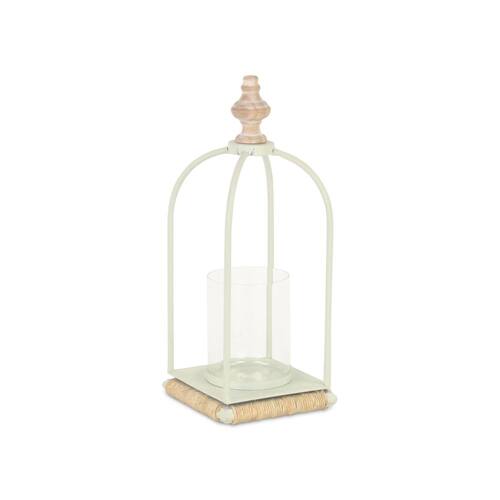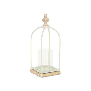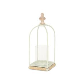 Lanterna de metal branco Thistledale com detalhes em madeira e corda