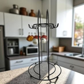Suporte para Xícara de Chá Black - Arthi O Suporte para Xícara de Chá Black da Arthi é a solução ideal para manter suas xícaras sempre ao alcance e bem organizadas. com um design moderno na cor preta, ele agrega elegância à sua cozinha ou área de café, otimizando o espaço no armário ou bancada. Sua composição em aço de alta qualidade com acabamento em pintura epóxi, torna o produto resistente, durável e fácil de limpar. Com capacidade para acomodar até 6 xícaras, o suporte possui formato compacto que se adapta facilmente a diferentes ambientes, tornando seu cantinho do café elegante e sofisticado. Medidas aproximadas do produto: Largura: 17cm. Comprimento: 26cm. Altura: 26cm; Capacidade: 6 Xicaras; Cor: Preto; Marca: Arthi Marca: Não Informado