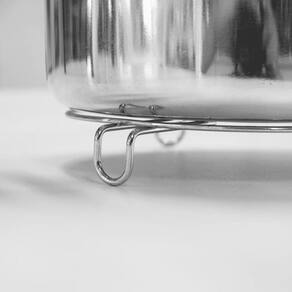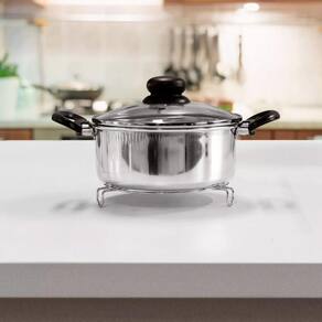 1. Qual o material do descanso de panela? - O descanso de panela é fabricado em aço cromado, um material resistente e durável.