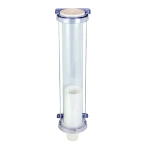 Fabricado em acrílico de alta qualidade, o suporte possui um tubo confeccionado em PVC semirrígido, com base superior e inferior injetadas em plástico ABS cristal. Além disso, conta com garras ajustáveis em polietileno PE que garantem a saída dos copos de forma prática e segura.