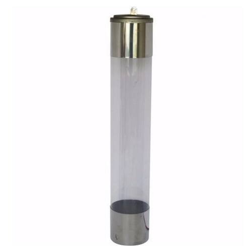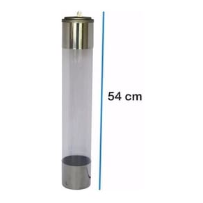 Suporte Dispenser De Copos De Chopp 300ml Cristal Inox Descrição: - Dispenser cristal inox para copos de chopp; - Corpo em plastico transparente, com extremidades em aço inox; - Sob medida para copos de chopp de 300ml; - Super simples de abastecer, basta tirar a tampa, adicionar os copos e colocar a tampa; - Muito em lojas, escritorios, e ambientes diversos. Medidas: - Altura total: 54cm; - Diâmetro da entrada dos copos: 8,4cm. JSN Marca: Não Informado