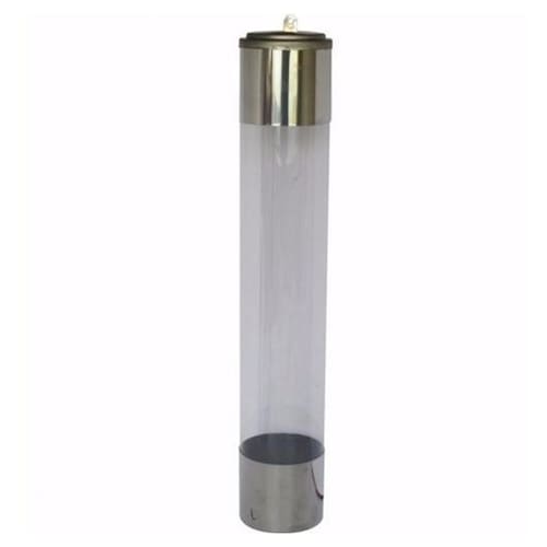 Suporte Dispenser De Copos De Chopp 300ml Cristal Inox Descrição: - Dispenser cristal inox para copos de chopp; - Corpo em plastico transparente, com extremidades em aço inox; - Sob medida para copos de chopp de 300ml; - Super simples de abastecer, basta tirar a tampa, adicionar os copos e colocar a tampa; - Muito em lojas, escritorios, e ambientes diversos. Medidas: - Altura total: 54cm; - Diâmetro da entrada dos copos: 8,4cm. JSN