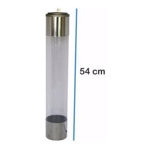 Suporte Dispenser De Copos De Chopp 300ml Cristal Inox Descrição: - Dispenser cristal inox para copos de chopp; - Corpo em plastico transparente, com extremidades em aço inox; - Sob medida para copos de chopp de 300ml; - Super simples de abastecer, basta tirar a tampa, adicionar os copos e colocar a tampa; - Muito em lojas, escritorios, e ambientes diversos. Medidas: - Altura total: 54cm; - Diâmetro da entrada dos copos: 8,4cm. Marca: Não Informado