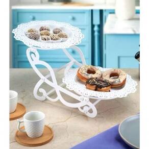 Produzido em plástico de alta qualidade, o suporte é leve, fácil de montar, desmontar e limpar, garantindo praticidade no uso. Com duas bandejas, oferece espaço suficiente para expor e servir diversas delícias de forma elegante.