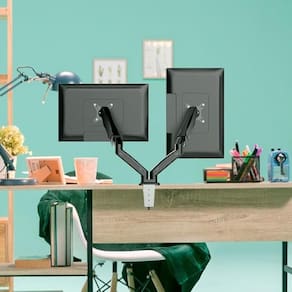 Eleve sua produtividade a um novo patamar com o Suporte Duplo Articulado com Pistão a Gás da Aquário. Ele permite que você posicione dois monitores (de 14" a 32") de forma independente, com um ajuste de altura suave e sem esforço, como se eles estivessem flutuando. Ideal para gamers, programadores e profissionais multitarefa, ele otimiza o espaço, melhora a postura e cria uma estação de trabalho dinâmica e ultra ergonômica.
