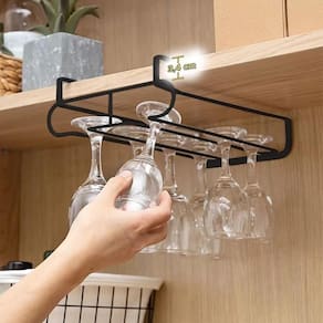 - Material de Alta Qualidade: Fabricado em metal resistente, com acabamento preto fosco, garantindo durabilidade e sofisticação. - Design Funcional: Ideal para prateleiras ou armários, ajudando a manter as taças organizadas e ao alcance. - Compatibilidade: Encaixe em prateleiras com até 3,4 cm de espessura. - Capacidade de Armazenamento: Até 6 taças de tamanho padrão. Até 10 taças menores, como taças de champagne.