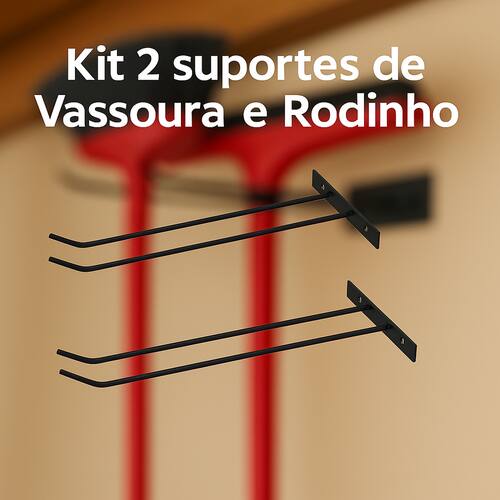 Kit 02 Unidades de Suporte de Parede Duplo de Vassoura e Rodinho em Ferro – 33x12x3cm