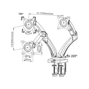 Suporte Duplo Mesa Articulado Pistão A Gas -Monitor- F160Adequado para a maioria dos displays de 17 -30.Baseado no conceito de design ergonômico, proporciona-lhe um estilo de vida mais saudável. Este suporte de visor duplo de elevador de cilindro do tipo desktop é baseado no projeto da mola a gás, permitindo que você mova a tela para qualquer direção e altura desejada.Produzido em aço carbono, com detalhes de acabamento para passagem dos fios em plastico.O produto acompanha kit de instalação completo. ¦ adequado para 17 -30 visor¦ suporta os orifícios VESA 75x75, 100x100 mm¦ Ângulo de rotação: 360 °¦ Ângulo de inclinação ajustável: + 35 ° a -50 °¦ Cor: preto Peso para cada tela: 2 a 9 kg