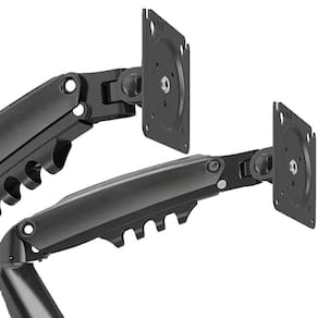 Suporte para 2 Monitores, com pistão a gás e juntas articuladas para facilitar o ajuste. Total flexibilidade para movimentos, sem esforço e sem a utilização de ferramentas. Design retrátil e ergonômico, economiza espaço e promove benefícios posturais. Permite o uso na borda da mesa ou sobre o tampo através de furo. Fabricado em liga de alumínio fundido super-resistente. Organizar de cabos integrado ao corpo do suporte. --------------------