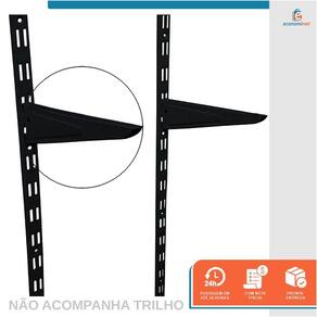 Suporte Trilho Duplo Preto 22cm - STARFERSuporte para prateleiras para trilho duplo preto em aço pintado.Medidas do suporte: 240mm (base prateleira) x 72mm ( base parede). Indicado para fixar prateleiras com largura até 220mm.Embalagem: Caixa de papelão.Ref.: 13070814Marca: Starfer