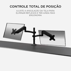 Sua estrutura conta com coluna rígida de 42 cm e braços articulados com pistão a gás de 5 geração, permitindo ajuste vertical de até 675 mm, garantindo posicionamento preciso e confortável para diferentes perfis de uso. Compatível com monitores de 17 a 35, o FH160L atende aos padrões VESA 75x75 mm e 100x100 mm, suportando de 2 kg a 9 kg por braço, com excelente estabilidade e segurança.