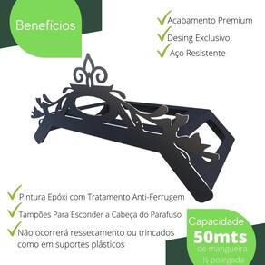 O Suporte de Mangueira Classic Preto é a solução ideal para evitar esses problemas e dar um toque especial na decoração em seu jardim. Produzido em aço com proteção anti-ferrugem de fosfatização e com um lindo acabamento de pintura eletrostática epóxi, garante que mesmo exposto a sol e chuva, não ocorrerá ressecamento ou trincados como ocorrem nos suportes de plásticos. Sua instalação é fácil pois já acompanham parafusos e buchas.