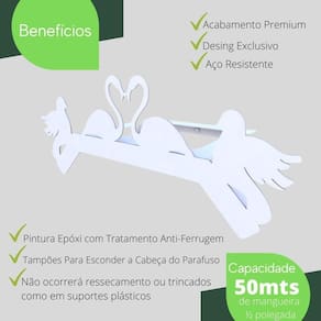 Suporte Enrolador De Mangueira De Jardim Passaro Branco Mangueira de Jardim é um item que não pode faltar em nossa casa, porém, se você não armazenar de forma adequada, surgem alguns problemas como ficar torcida, dificuldades para desenrolar ou ocupar grande espaço de forma desordenada.