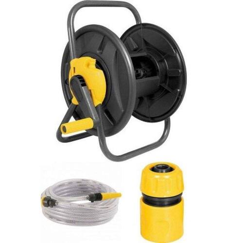 Kit composto de 1 enrolador de mangueira sem rodas Vonder + 1 Mangueira para jardim, trançada, transparente, 20 m, Vonder + 1 Engate rápido 1/2 passagem livre Vonder - Enrolador de mangueira sem rodas Vonder Conteúdo da Embalagem: 1 Suporte para mangueira, acompanha: 2 conectores 1/2 fêmea , 1 conector principal macho . Possui corpo em plástico ABS, com manivela para acionamento, base e alça metálicas tubulares para transporte/apoio. Acompanha conectores macho para engate rápido 1/2. Fácil montagem, não necessita de ferramentas. Indicado para enrolamento de até 30 m de mangueira de jardim 1/2 não acompanha mangueira . Garantia legal: 90 dias DETALHES TÉCNICOS Capacidade do suporte enrolador para mangueira:Até 30 m Cor do suporte enrolador para mangueira:Amarelo e preto Material do suporte enrolador para mangueira:Plástico ABS Massa aproximada peso :1,67 kg - Mangueira para jardim, trançada, transparente, 20 m, Vonder Conteúdo da Embalagem: 1 Rolo de mangueira para jardim com 20 metros. Acompanha: 1 conector 3/4, 1 adaptador 3/4 para 1/2 e 1 esguicho plástico. Pronta para uso, acompanha a conexão da torneira e esguicho plástico reto. Indicada para condução de água fria na limpeza e irrigação em jardim. Garantia legal: 90 dias + Garantia contratual: 3 meses DETALHES TÉCNICOS Material da mangueira: PVC Diâmetro interno: 7/16 - 11,1 mm Espessura da parede: 1,8 mm Pressão máxima de trabalho: 140 lbf/pol Cor da mangueira: Transparente Massa aproximada peso : 1,548 kg