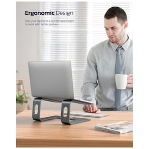 A série Nulaxy Stands foi projetada para a sua vida diária, estamos estabelecendo a família de Stand que inclui suporte para telefone celular, suporte para tablet, suporte para laptop e mais s designs estão chegando. Elegante Simples Elegante Robusto Você já se sentou na frente de seu laptop, trabalhando por longas horas, sentindo dores no pescoço e nas costas Quer se livrar da má postura ao usar o laptop Este é provavelmente o suporte para laptop que você está procurando. Você nunca saberá como precisa disso até que seja o proprietário. O suporte do laptop Nulaxy C3 inclina o laptop ligeiramente para a frente, o que aproxima a tela para uma visualização mais nítida e confortável. Com o laptop levantado e um teclado externo e mouse no lugar, o suporte elegante transforma qualquer escrivaninha ou mesa em um espaço de trabalho ergonômico ideal para usuários de laptop. Liga de alumínio premium e design aberto permite fluxo de ar e resfriamento para laptop. Aumenta a altura da tela do laptop para 6 polegadas para melhor ergonomia. O acabamento de precisão em alumínio oferece aparência e toque superiores. Robusto e forte o suficiente para suportar laptops de até 4 kg de peso. Melhor ergonomia O suporte para laptop Nulaxy C3 eleva a altura da tela do seu laptop para 6 polegadas para melhor ergonomia, você pode manter seu laptop a uma distância adequada de seus olhos. E também conserte ergonomicamente sua postura enquanto trabalha no laptop. Almofadas de silicone Grandes almofadas de silicone nas partes superior e inferior mantêm o seu laptop no lugar e protegem no ao máximo de quaisquer arranhões indesejados. Melhor dissipação de calor, a inclinação para frente e o design de estilo aberto permitem o melhor fluxo de ar para manter o seu laptop mais frio. Instalação simples Instalação em apenas uma etapa, basta inserir A e B em C e fixá los no lugar. Clique aqui Dispositivos compatíveis Laptops de até 44cm de até 44cm de altura ajustável, Sim Ângulo ajustável Não Rolamento de carga máxima 20kg. Elevar a altura da tela do laptop 8cm a 53cm Marca: Não Informado