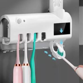 O Suporte de Escova de Dente e Higienizador com Esterilização Inteligente é a resposta para uma higiene bucal mais segura e eficaz. Mantenha suas escovas de dente livres de germes com a esterilização UV, aproveite a conveniência do dispenser de creme dental integrado e a facilidade de recarregar a bateria via USB. Cuide da sua saúde bucal com este dispositivo inteligente e prático.