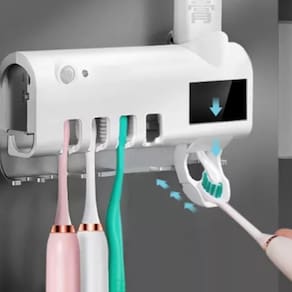 Suporte Escova Dente Com Esterealizador Dispenser Automatico Pasta Higienizador Uv