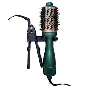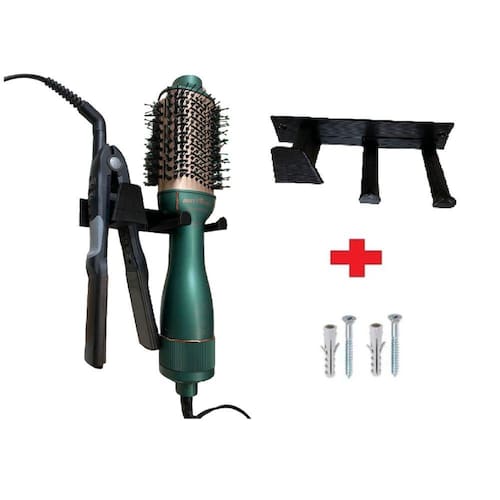 Suporte de escova secadora e chapinha de parede, encaixe perfeito tanto com escovas secadoras fixa e rotativa, e diversos modelos de chapinha/ prancha de alisamento. O suporte auxilia tanto no momento de guarda e organizar os equipamentos de cabelo e também na manutenção da escova, pois no suporte não ocorre o risco de amassar e danificar as cerdas.