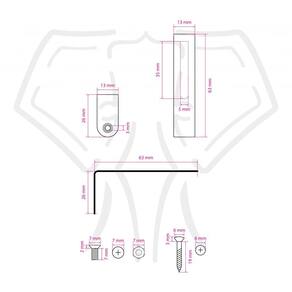 Embalagem com 1 (um) chapa em L + 1 (um) parafuso fixação no corpo + 1 (um) parafuso regulagem na chapa + 1 (um) porca de rosca para regulagem na chapa