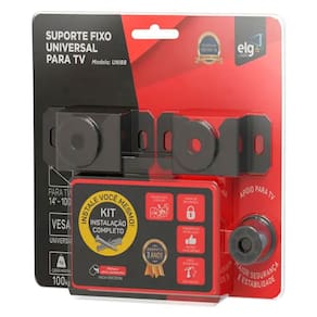 Características: Marca: ELG Modelo: UNI88 Tamanho compatível: Monitores de 14 Polegadas à 100 Polegadas Peso suportado: 100 kg Equipamentos compatíveis: Televisão Distância mínima da parede: 2,5 cm Furação VESA Mínima: 75x75mm Estrutura de fixação: Aço carbono Tratamento anticorrosão: Sim Pintura epóxi eletrostática: Sim Apoio: Nylon reforçado