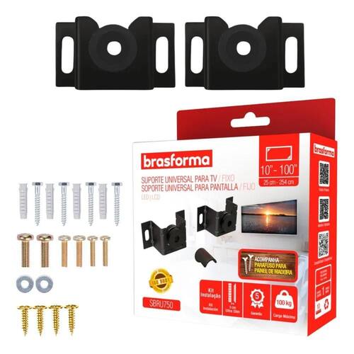 Suporte fácil instalação, para televisores de 10 a 100. Suporte fixo, pode ser fixado na parede ou painel de mdf ou madeira Suporta até 100 kg