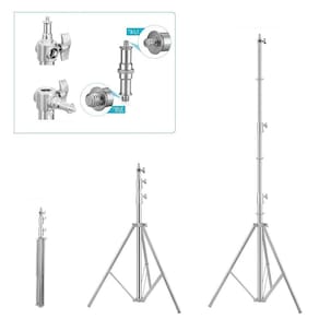 O suporte Fundo Infinito SL280-BS150 Estande Aço Inox para Estúdio Fotográfico 2.8x1.5m é um sistema de sustentação leve, resistente e extensível, perfeito para montagem de Fundo Infinito e equipamentos de Estúdio. Projetado para diversas aplicações, o conjunto é composto por 2x Tripés de Iluminação Light Stand Aço Inox com Amortecimento de Mola com altura máxima de 2.80 metros 280cm , 1x Barra Retrátil Telescópica Transversal com comprimento máximo de 1.5m 150cm e 3x Alicates Garra para fixação de tecido. É o sistema ideal para a complementação ou ampliação de um Estúdio de Fotografia e de Filmagem.Este kit suporte Fundo Infinito Stand ajustável é feito de Aço Inoxidável Austenítico, que promove resistência à corrosão e alta durabilidade. Seu design com estrutura robusta oferece capacidade de carga estável e resistente, suportando equipamentos de até 10kg. além de fornecer montagem rápida e segura, o Suporte Fundo Infinito SL280-BS150 é ideal para estúdios fotográficos, vídeos, fotos 3x4, ensaios de gestante, Newborn, ensaios de moda e editoriais, entre outros. obtenha uma resistência excepcional para trabalhos pesados em estúdio profissional ou doméstico.Tripé de Iluminação Light StandOs 2x Tripés Light Stand em Aço Inox Profissionais possuem 3 Seções, cada estágio integra uma trava individual que permite a regulagem da altura do tripé. As seções também são equipadas com molas amortecedoras que reduzem o impacto de uma queda repentina e brusca ao ajustar a altura, oferecendo maior segurança e ajudando a proteger o equipamento. A base do Tripé de Iluminação com Amortecimento de Mola para Estúdios se liga às pernas através de dobradiças metálicas, o que facilita sua abertura e fechamento. Ambos os tripés alcançam uma altura máxima de 2.80 metros 280cm , altura mínima de 100cm, pensado apenas 2.35kg e suportado equipamentos de até 10Kg.Barra de Extensão TelescópicaA Barra Retrátil Telescópica Transversal extensível possui 3 Seções, tendo um comprimento máximo de 1.5m 150cm e mínimo de 65m, o ajuste de tamanho ocorre por meio de um mecanismo de trava giratória, você pode torcê-las e elas travam no lugar, evitando que a haste se estenda acidentalmente além do que você deseja. Com capacidade para equipamentos ate 10kg, o conjunto inclui também 3x Alicates Garra para a fixação de tecidos de Fundo Infinito, que podem segurar panos de fundo, papel fotográfico e tecidos de Chroma Key com precisão e firmeza.Principais Características: Sistema de Suporte Profissional para Fundo Infinito, alta durabilidade e resistência Estande fácil de montar, leve e extensível, com capacidade para equipamentos de até 10Kg 2x Tripé de Iluminação Light Stand de Aço Inox Amortecimento de Mola com altura até 2.8 metros 1x Barra Retrátil Telescópica Transversal Aço Inox com comprimento de até 1.5 metros 3x Alicates Garra para a fixação de tecidos, lonas, fundo Chromakey ou papel fotográfico feito em Aço Inoxidável Austenítico, estande de alta resistência perfeito para Estúdio Fotográfico ideal para fotografia de retratos, filmagem de longa-metragem, gravações de vídeo, fotografia de moda, fotografia de produtos, objetos e muito mais.Tecido de Fundo Infinito vendido separadamente. Imagens Ilustrativas.