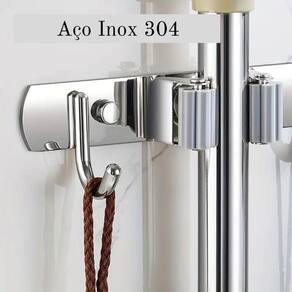 Suporte Gancho Inox Parede Vassoura Rodo Pá Chaveiro Cozinha