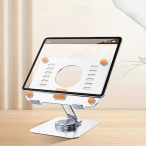O suporte giratório é a escolha perfeita para quem busca funcionalidade e elegância. Com sua cor prateada, adapta-se perfeitamente a qualquer ambiente, seja em casa ou no escritório. A estrutura de alumínio oferece durabilidade e uma base antiderrapante que assegura estabilidade em qualquer superfície. Projetado para tablets de 7 a 12 polegadas, este suporte suporta até 2 kg e permite ajustes flexíveis de ângulo até 90 e rotação completa de 360, garantindo a visualização ideal em qualquer situação. Além disso, sua montagem e desmontagem são incrivelmente simples, o que o torna perfeito para uso em diferentes locais. O modelo é ideal para quem precisa de um suporte de mesa confiável e versátil para o seu tablet. Homologação Anatel: 136132205567