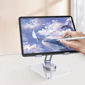 O suporte giratório é a escolha perfeita para quem busca funcionalidade e elegância. Com sua cor prateada, adapta-se perfeitamente a qualquer ambiente, seja em casa ou no escritório. A estrutura de alumínio oferece durabilidade e uma base antiderrapante que assegura estabilidade em qualquer superfície. Projetado para tablets de 7 a 12 polegadas, este suporte suporta até 2 kg e permite ajustes flexíveis de ângulo até 90 e rotação completa de 360, garantindo a visualização ideal em qualquer situação. Além disso, sua montagem e desmontagem são incrivelmente simples, o que o torna perfeito para uso em diferentes locais. O modelo é ideal para quem precisa de um suporte de mesa confiável e versátil para o seu tablet. Homologação Anatel: 136132205567 Marca: Não Informado