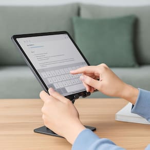 Design Ajustável: O suporte possui ajuste de ângulo de inclinação para atender às suas necessidades específicas de visualização e conforto. Com múltiplas posições de inclinação, você pode personalizar a altura e o ângulo de seu dispositivo para uma postura mais ergonômica.