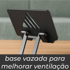 Base Antiderrapante: Equipado com pés de borracha antiderrapantes, o suporte assegura que fique firmemente no lugar, evitando deslizamentos e garantindo uma base estável para seu dispositivo.