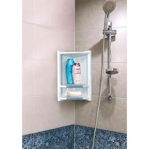 Especificação: Este lindo Suporte de Canto é ideal para organizar seu banheiro. Nas suas 2 divisórias é possível guardar shampoo, condicionador, sabonete, bucha e outros. Seu design moderno e inteligente, permite que este suporte seja utilizado como item de decoração, além de otimizar o canto da parede do box. Sua instalação é prática e fácil.