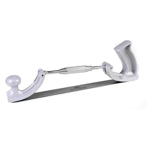Suporte ajustável para lima de funileiro worker - 264406 - adequado para superfícies retas e curvas como chapa metálica, metais não ferrosos, plástico, trabalho de superfície, rebarbamento, remoção de pontos de solda e cordões de solda. - indicado para uso com lima de funileiro de 14'' - 335,6mm. - estrutura de alumínio fundido leve. - distância entre furos: 325mm. - o raio de curvatura da lima pode ser ajustado por meio do sistema de tensionamento. - lima não inclusa.