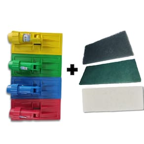 Suporte lt + 10 fibras Descrição: Suportes para utilização de fibras abrasivas de limpeza. Com junção articulada, pode ser utilizado em pisos, paredes e diversas superfícies. Quando utilizado com cabo, alcança áreas em alturas de até 9 metros e previne acidentes com andaimes e escadas permitem limpar qualquer tipo de superfície com facilidade e eficiência em função da articulação no suporte. Sistema de fixação do cabo através de rosca universal. Medidas: Comprimento: 23 cm Largura: 10 cm Contém: 01 suporte lt Mais 5 fibras limpeza leve,geral e pesada 4 fibras geral 3 fibra pesada 3 leve Sem o cabo Fibra branca: Produto sem abrasivo, evita a formação de biofilmes que tendem a formar-se em superfícies irregulares evitando a ocorrências de contaminação de alimentos. Resina a prova de água antiaderente. Superfícies delicadas: limpeza de acabamento de superfícies delicadas. Não risca. Ideal para limpeza de porcelana, louças, cristais, prataria, inox, etc. Alvenaria madeira ferragem: utilizado para limpeza e manutenção. Pisos: limpeza dos rejuntes de pisos, como cerâmica,azulejos, etc. Fibra verde limpeza geral: Indicada para limpeza geral de utensílios, desde que não sejam polidas. Produto abrasivo, ideal para médias sujidades como equipamentos, pisos e superfície de maneira eficaz. Alvenaria: limpeza dos materiais grosseiros do tijolo a vista e os seus rejuntes.Cozinha industrial: com alto poder de remoção é eficaz para limpeza de coifas,fogões, assadeiras, grelhas entre outros utensílios. Utensílios, pisos, equipamentos: remove a sujeira de superfícies como pisos, paredes, bancadas, equipamentos e utensílios em geral. Fibra verde limpeza pesada: Indicada para sujeiras de maior densidade a fibra pesada pode ser utilizada para remoção de crostas de panelas, grelhas ou para limpeza de final de obra onde se encontram resíduos mais resistentes. Alvenaria: eficaz para eliminar a caiação. Deve ser utilizada em materiais grosseiros, como tijolo a vista e seus rejuntes. Revestimento em geral: remover areia e restos de argamassa. Madeira: remover areia e restos de argamassa. Ferragem: remove a ferrugem uniformizando superfícies após lixamento para receber pintura, melhorando o acabamento final.