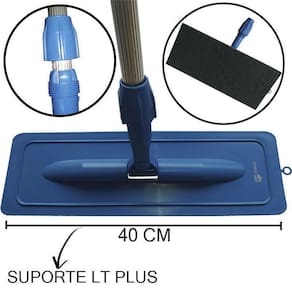 Suporte limpa tudo plus com fixação adesiva cabo 1,40 m e 3 fibrasFibra branca macia : indicado para limpeza leve. Aplicar em: superfícies em geral, como paredes, fórmica, inox etc. Menor probabilidade de arranhar superfícies delicadas.Fibra verde geral: indicado para limpeza leve e média. Aplicar em: superfícies como vidros, espelhos, porcelanas e outros sem riscos. Própria para superfícies delicadas pois não risca. Formulação especial: evita o surgimento de bactérias.Fibra verde limpeza pesada: indicado para limpeza duras. Aplicar em: superfícies como grelhas de churrasqueiras e chapas. Própria para limpezas difíceis e pesadas.Este kit irá o auxiliar nas mais diversas atividades das quais pretende realizar, desde a limpeza de um simples balcão, á limpeza daquela beirada da piscina que sabemos que é de difícil limpeza;Com o comprimento maior em relação aos demais modelos, a sua limpeza fica mais fácil de ser realizada, ajudando você a diminiur o tempo gasto.O cabo de 1,45 mts lhe permite alcançar qualquer área desejada, podendo assim, ofercer uma maior autonomia na hora da limpeza.Dimensão do produto:Comprimento: 1,52 mtsLargura: 40cmItens inclusos: 3 fibras sintéticas 40cm 1 uni branca - limpeza leve1 uni verde - limpeza geral1 uni verde grossa - limpeza pesada1 cabo de 1,45m1 suporte lt plus de 40 cm