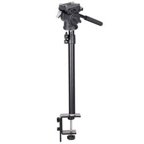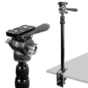Suporte Mesa Com Mini Cabeça Fluida Para Câmeras, Iluminadores E Acessórios De Estúdio Este Suporte de Mesa Universal com Mini Cabeça Fluida para Câmeras, Iluminadores e Acessórios de Estúdio, possui altura ajustável, que pode ser expandida de 47m até 110cm e você pode montar na Mesa de seu Escritório ou Estúdio com espessura de até 14cm com a Braçadeira Clamp de alta resistência e qualidade. Feito da liga de alumínio resistente e leve, fornece a estabilidade máxima, manterá o equilíbrio perfeitamente entre o suporte e a mesa.Sua Mini Cabeça de Tripé Fluida inclusa possui base da panorâmica inferior em escala para imagens panorâmicas com precisão. Suporta equipamentos de até 3kg, e possui uma faixa de inclinação de 55 a 90 para diversos ângulos de imagem. Sua Alça Handle pode ser girada livremente 360 graus para alternar entre as mãos esquerda e direita rapidamente para usar. Na Placa de Liberação rápida superior possui montagem 1/4 compatível com a maioria das Câmeras, Filmadoras, Webcams, Projetores, Iluminadores, Ring-Light, entre equipamentos, e em sua base inferior possui entrada de 3/8 é compatível com a maioria dos Tripés, Monopés e Sliders. Este Suporte de Mesa para Estúdio é o equipamento perfeito para criar vídeos, transmissões , reuniões por vídeo chamada e produções audiovisuais profissionais.